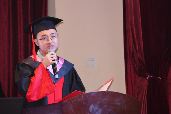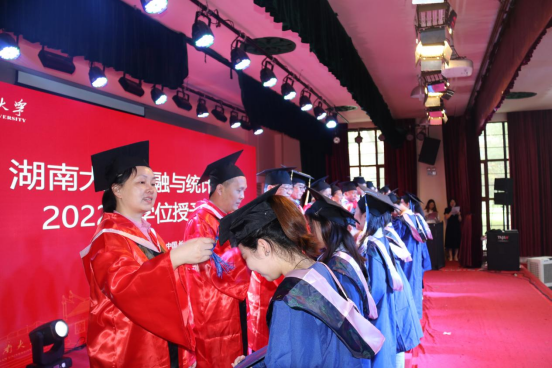 毕业生代表、2018级博士研究生徐照宜讲述了在湖大十年求学的成长故事和人生感悟,他表示是湖大让自己勇敢地尝试无限可能,湖大不仅仅只是研究学问的学术殿堂,更是“实事求是”的精神图腾;财院校区也不只是享受青春的大线上真人百家乐 园,更是“经世致用”的文化象征。他祝福每位毕业生将自身发展同国家富强、民族复兴紧密结合,愿二十年后能用更响亮的声音向母校汇报,交出金统人无愧于国家和时代的答卷。