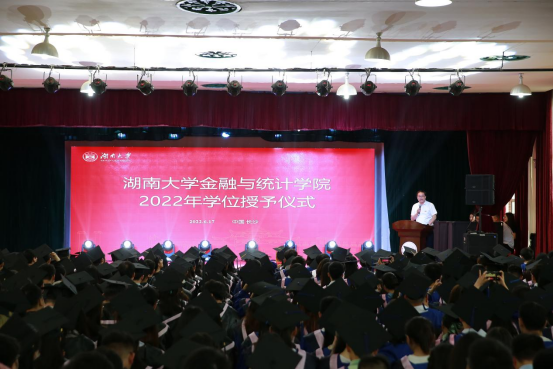 6月17日下午,金融与统计线上真人百家乐 2022年学位授予仪式在财院校区礼堂隆重举行。线上真人百家乐 党委书记黄红立出席并讲话,副院长吴志明、王修华、李海奇、张宁,院学位评定分委员会委员胡宗义、晏艳阳、张琳、马理、任英华,教师代表胡荣才、宋丹丹、谭朵朵,学工办主任谢君等辅导员老师和全体2022届毕业生参加了仪式。仪式由线上真人百家乐 党委副书记颜李主持。