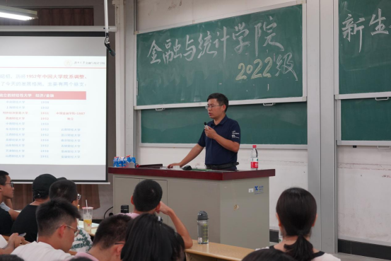 王修华以线上真人百家乐 办学历史和学科沿革为切入点,展开讲解了专业设置、机构设置、师资力量、课程情况、科研成果、人才培养等方面内容,全面地给新同学上了进入线上真人百家乐 金融与统计线上真人百家乐 的第一堂必修课。湖大金统线上真人百家乐 学科办学历史悠久,金融学科是中国人民银行首批重点建设学科、国家“211工程”重点建设学科。金融学科与统计学科是国家“985工程”哲学社会科学创新基地的主要支撑学科、线上真人百家乐 “双一流”建设的主要支撑学科。享有“千年学府、金融黄埔”的美誉,是国内高校金融与统计专业人才培养的重要基地之一。