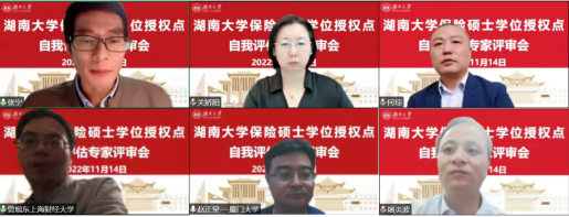 保险硕士学位授权点自我评估专家评审会专家组由全国保险专业学位研究生教育指导委员会委员、上海财经大学金融线上真人百家乐 曾旭东教授担任组长,成员包括全国保险专业学位研究生教育指导委员会委员、厦门大学经济线上真人百家乐 赵正堂教授,复星联合健康保险股份有限公司副总经理、总精算师关娇阳,财信吉祥人寿保险股份有限公司产品精算部及个险部总经理屠炎波,大家人寿保险股份有限公司湖南分公司总经理何琼。