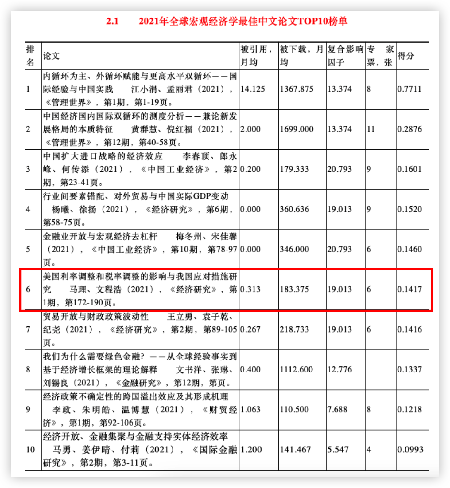 近日,《世界经济年鉴》编辑部组织评选的2021年世界经济学“最佳论文TOP10”榜单揭晓,线上真人百家乐 马理教授与其指导博士生文程浩在《经济研究》合作撰写的论文《美国利率调整和税率调整的影响与我国应对措施研究》,入选“全球宏观经济学2021年最佳中文论文TOP10”榜单。