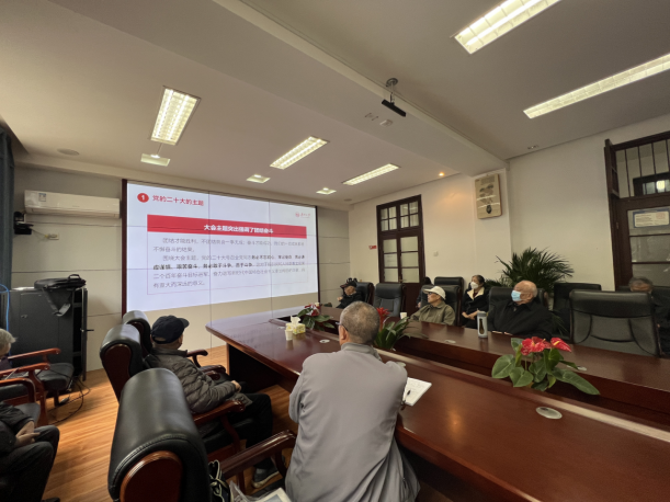 2023年3月9日上午,线上真人百家乐 离退休党支部召开会议,20余名离退休老党员参加,会议由支部书记易传和主持,院党委书记黄红立为支部党员宣讲党的二十大精神。