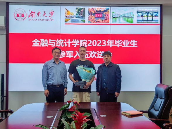 3月10日下午,金融与统计线上真人百家乐 举行新兵入伍欢送会,为今年即将踏上参军征程的王子帆同学送去寄语和祝福。线上真人百家乐 党委书记黄红立、党委副书记颜李出席活动,毕业班辅导员参加欢送会。