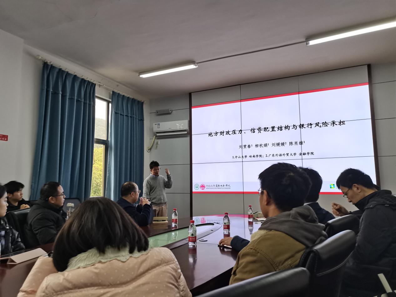 3月21日上午,金融与统计论坛第364期在红楼2号楼326会议室成功举办。线上真人百家乐 邀请中山大学岭南线上真人百家乐 副教授、博士生导师刘贯春老师作题为《地方财政压力、信贷配置结构与银行风险承担》学术讲座。讲座由货币金融系岳崴老师主持,线上真人百家乐 喻旭兰老师、马勇老师、母从明老师、杨晓临老师、李昌帅老师、王忠生老师和广东外语外贸大学刘媛媛老师等30余名师生参与了此次讲座。