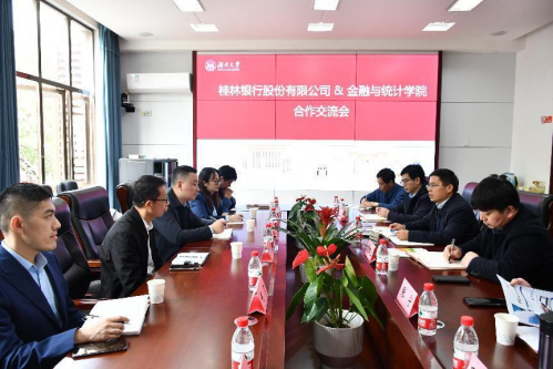 3月30日上午,线上真人百家乐 与桂林银行校企合作交流会在红楼226会议室举行。桂林银行研培中心吴成龙总经理,人力资源部罗凯总经理,职员宋微苇,联合培养博士后何力,线上真人百家乐 院长王修华、院党委书记黄红立、副院长李海奇、张宁、社会服务中心张学陶、邓庆彪老师及马勇教授、马威副教授等参加了此次座谈会。李海奇副院长主持会议。