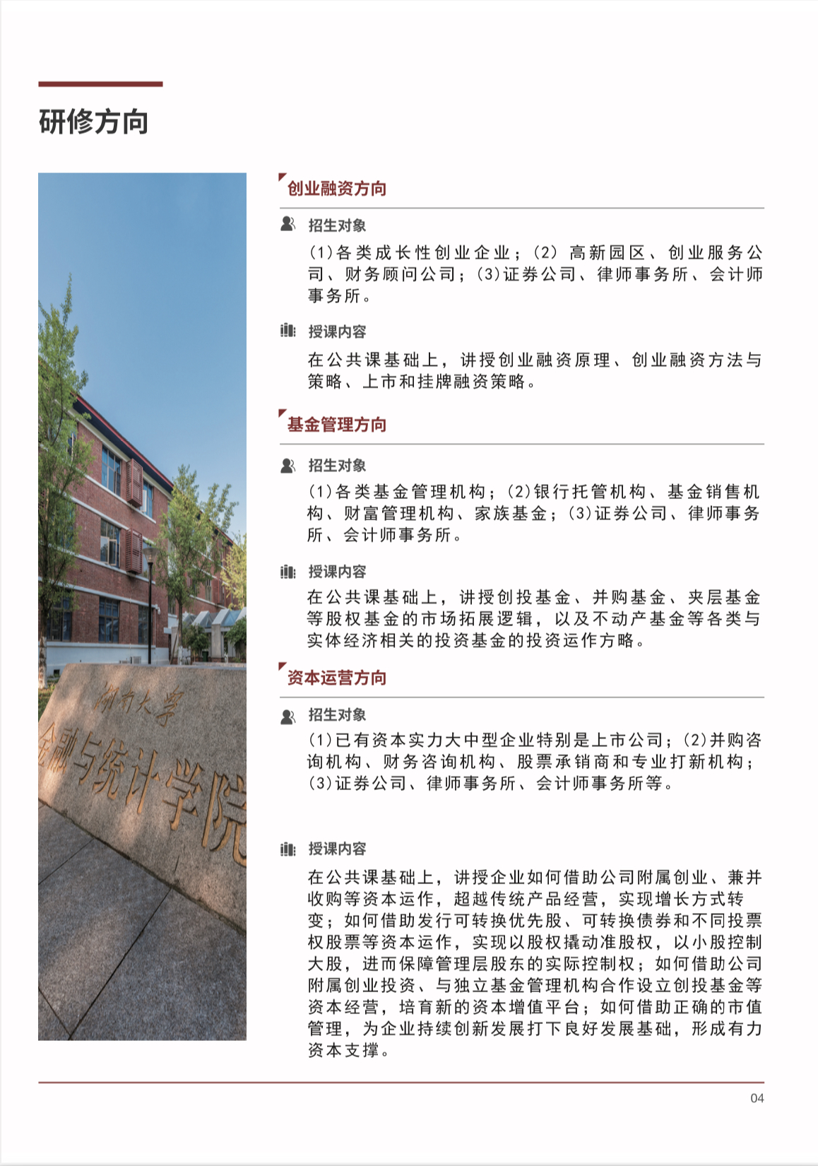 线上真人百家乐 金融与统计线上真人百家乐 实业投融资研修班招生简章