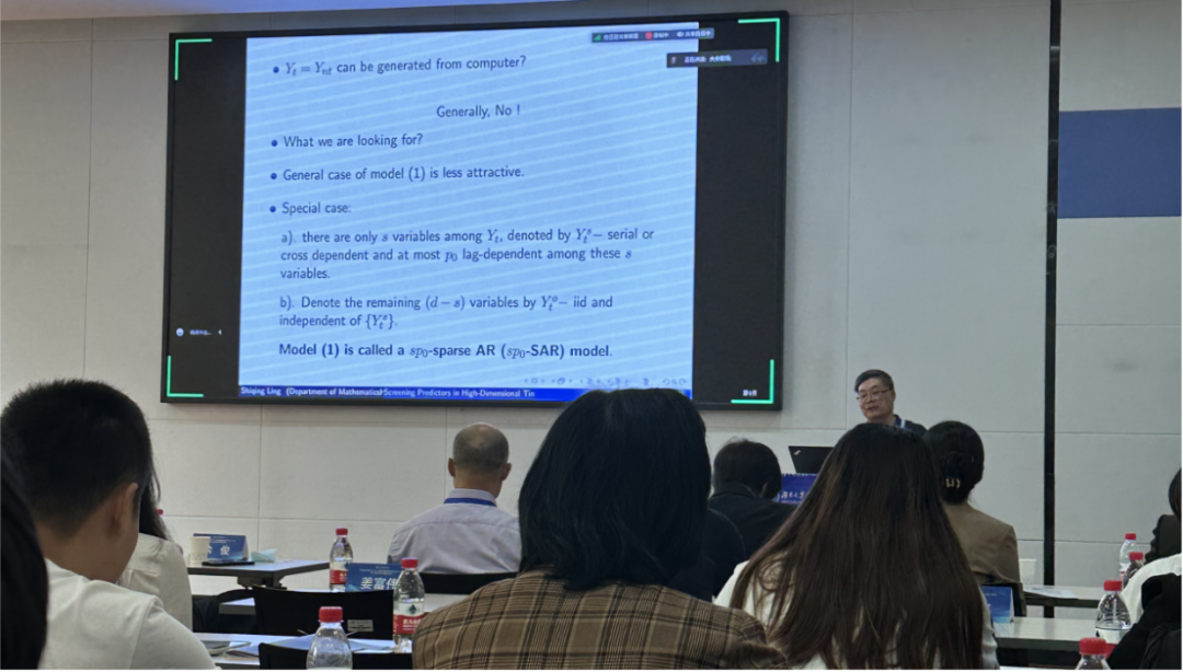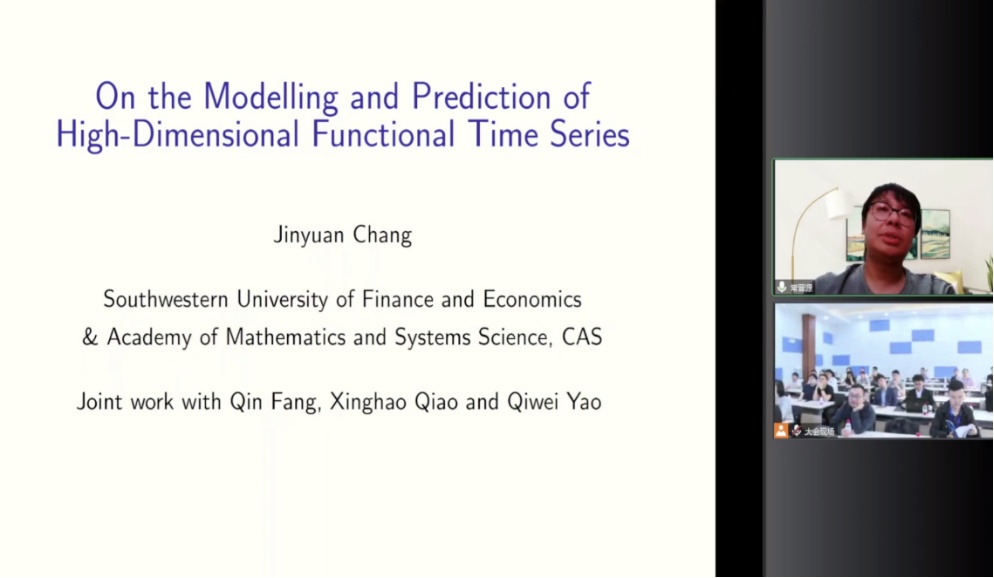第二时段特邀报告由中国科线上真人百家乐 数学与系统科学研究院孙玉莹副研究员主持,香港科技大学数学系凌仕卿教授和新加坡管理大学经济线上真人百家乐 余俊教授做主旨演讲。凌仕卿教授以《高维时间序列预测因子筛选方法》为题进行分享。凌仕卿教授首先介绍了稀疏高维向量自回归模型,提出了一种基于自适应套索的预测因子筛选方法以及其渐近性质。凌仕卿教授随后介绍了高维因子向量自回归模型,提出了对应的因子筛选方法,研究了其理论性质和实际应用。余俊教授以《长记忆的弱识别对波动率建模的影响》为题分享了他的最新研究成果。余俊教授首先介绍了波动率的长记忆性及其建模,之后讲解了长记忆波动率模型的弱识别问题。为了解决这个弱识别问题,余俊教授提出了一种识别稳健的置信集合构建方式。最后,他详细阐述了该方法在已实现波动率中的应用,发现对于已实现波动率的估计常出现弱识别的问题,解释了为何实证文章中会广泛出现两种不同的结果。