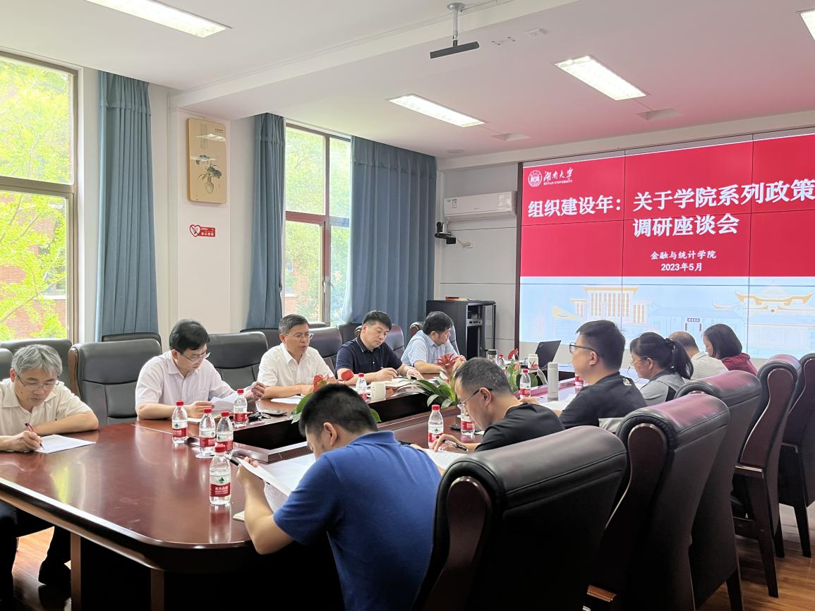 5月30日,金融与统计线上真人百家乐 深入贯彻党的二十大精神暨线上真人百家乐 关于习近平新时代中国特色社会主义思想主题教育的有关要求,结合线上真人百家乐 “组织建设年”和《线上真人百家乐 深入开展调研实施方案》的要求,召开了关于线上真人百家乐 系列政策制度的调研座谈会。线上真人百家乐 党委书记黄红立,副院长吴志明、副院长李海奇及19名来自不同教学系的教师代表参与座谈,院长王修华主持会议。
