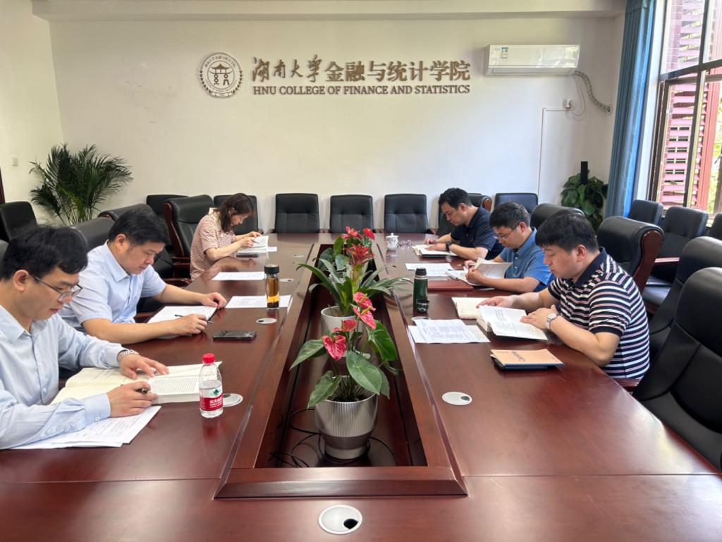 6月20日,金融与统计线上真人百家乐 党委学习贯彻习近平新时代中国特色社会主义思想主题教育读书班以“加快建设教育强国为中华民族伟大复兴提供有力支撑”为主题开展集中读书。线上真人百家乐 院长王修华同志领学,全体领导班子成员参加。