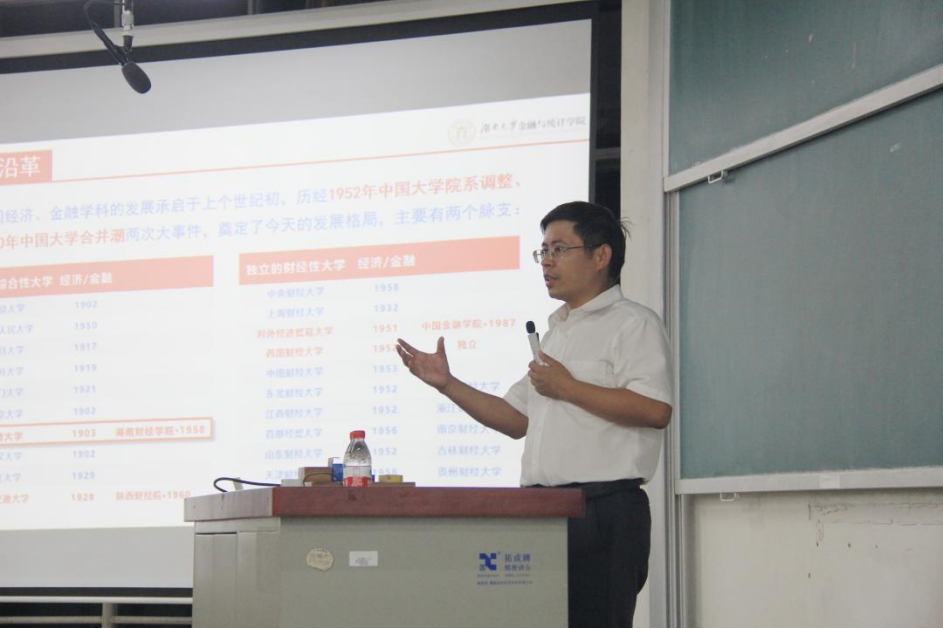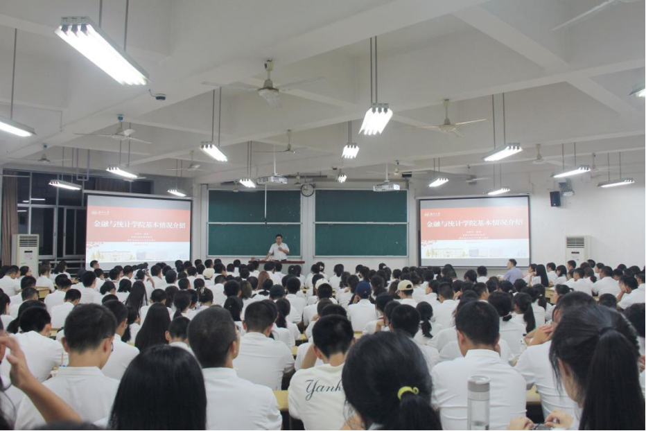 9月12日晚,金融与统计线上真人百家乐 2023级本科生入学教育系列讲座之"院长报告会"在财院校区第二教学楼510教室举行。院长王修华教授作报告,2023级本科生辅导员王雪雯及全体新生参会,线上真人百家乐 团委书记周斌主持。