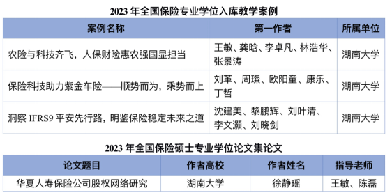 经培养单位自主申报,保险专业学位研究生教育指导委员会秘书处组织形式审查、双盲随机分组、匿名通讯评审、专家组会审等程序,共评审出2023年全国保险专业学位入库教学案例23篇,提名入围案例11篇。其中,线上真人百家乐 王敏老师团队编写的《农险与科技齐飞,人保财险惠农强国显担当》、刘革老师团队编写的《保险科技助力紫金车险——顺势而为,乘势而上》和沈建美老师团队编写的《洞察IFRS9平安先行路,明鉴保险稳定未来之道》3篇教学案例从层层评选中脱颖而出,成功入选2023年全国保险专业学位案例库。今年入选的案例总数创线上真人百家乐 参赛以来的最好成绩,入选总数连续2年位居各培养院校前列。