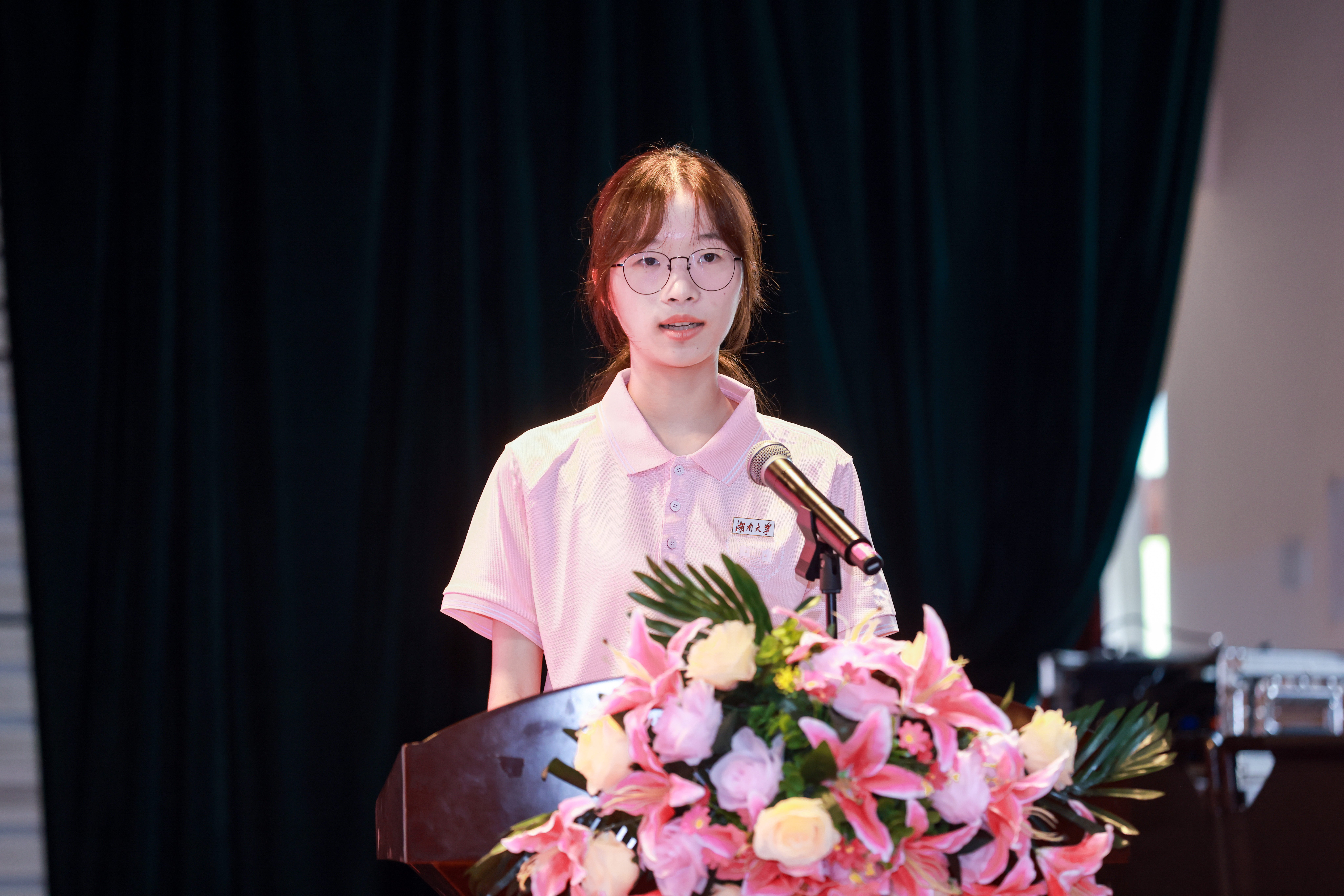 2021级金融工程本科生雷思齐、2024级精算学本科生郑紫怡、2024级金融学博士研究生梁中旗等在校生代表、本研新生代表分别发言,表达了他们在湖大金统求学求知的喜悦和对未来学习科研的期待,希望大家注重实践、平衡心态、担当奉献,树立德笃行之志,做经世济民之人,在金融统计的广阔天地里书写青春新篇章。