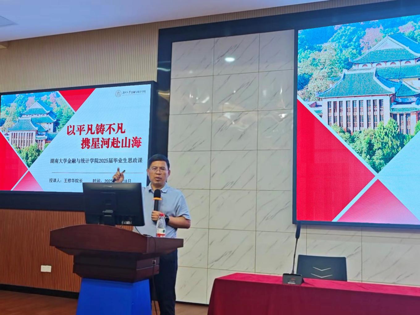 6月18日下午,金融与统计线上真人百家乐 2025届毕业生思政课在财院校区老食堂二楼报告厅举办。线上真人百家乐 院长王修华以《以平凡铸不凡,携星河赴山海》为题为毕业生授课,2025届全体毕业生参加。