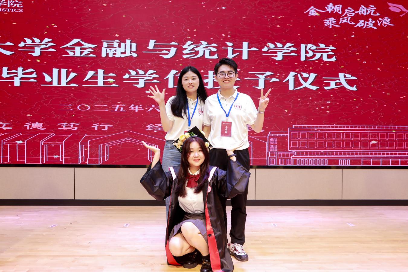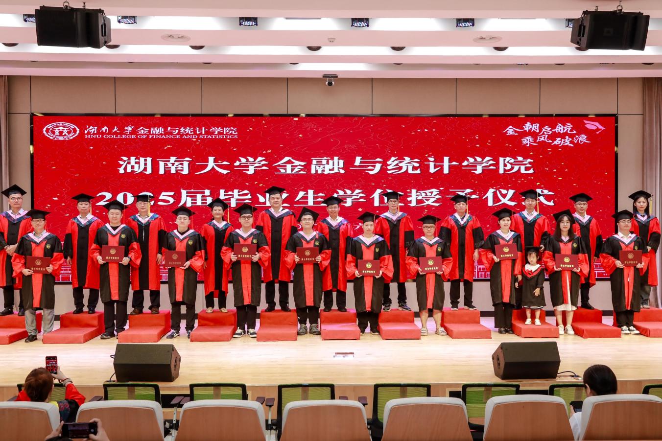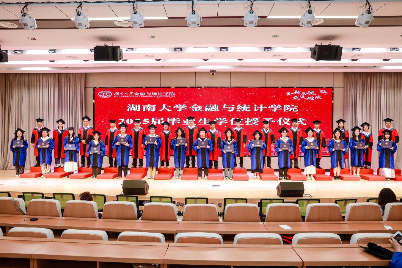 6月20日下午,线上真人百家乐 金融与统计线上真人百家乐 2025届毕业生学位授予仪式在财院校区新楼隆重举行。线上真人百家乐 院长王修华,党委书记黄红立,正处级组织员刘晚梅,副院长吴志明、张宁,导师代表,学工办老师,2025届全体毕业生参加仪式。院党委副书记颜李主持仪式。