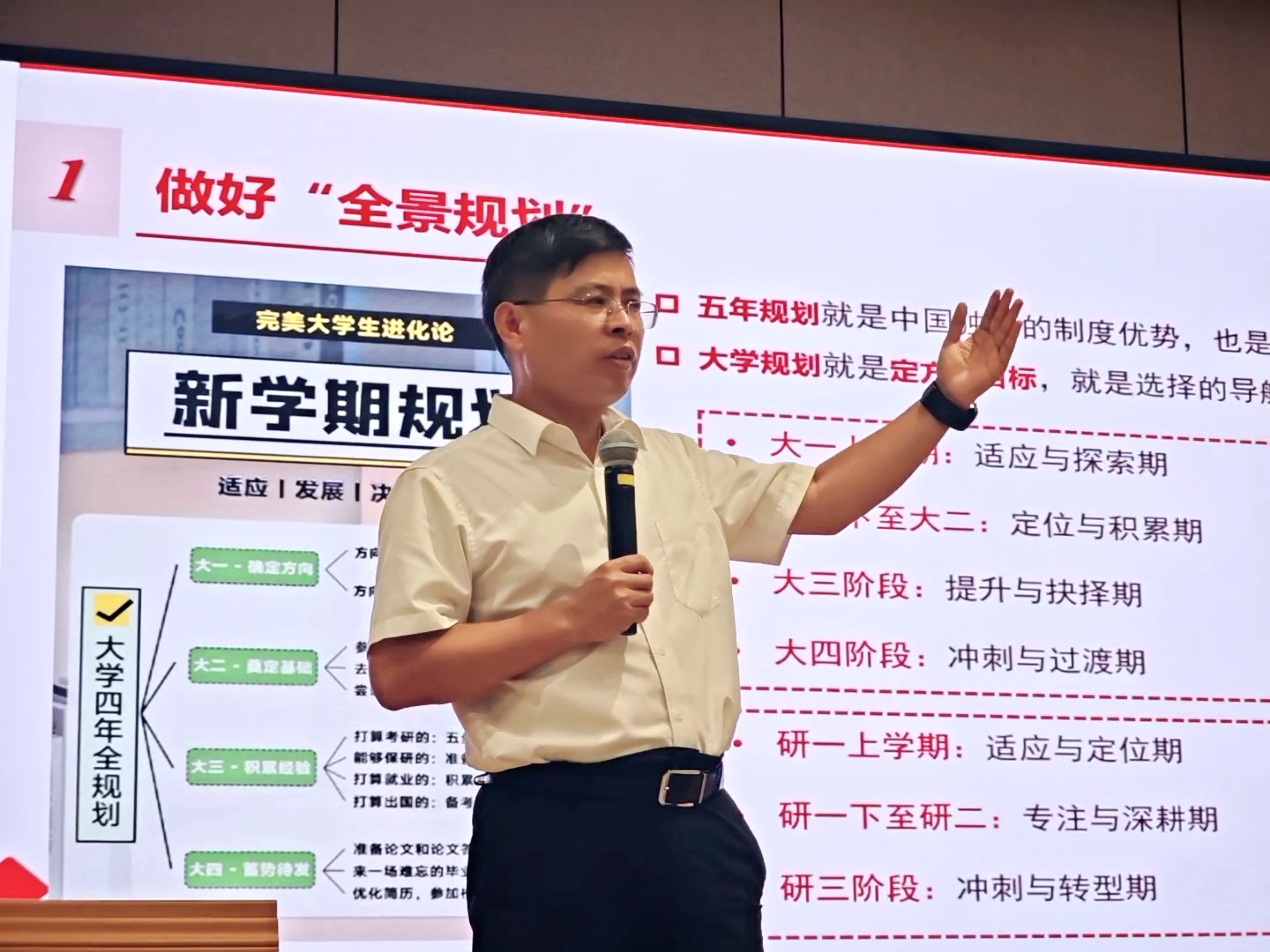 王修华首先对全体新同学加入金统大家庭表示热烈欢迎,并结合自身的的成长历程,用心用情向同学们讲述大学成长。他围绕“读懂中国”“读懂线上真人百家乐 ”“读懂自己”三大核心维度,为新生们勾勒时代坐标、解读线上真人百家乐 底蕴、指引成长方向。一是读懂时代之中国,在责任担当中定位青春坐标。王修华聚焦“时代坐标之变、战略导向之变、核心使命之变、科技驱动之变、文化自信之变”,分析新发展阶段与百年未有之大变局的国内外形势,解读教育强国建设、金融强国建设的新要求,指出“人工智能+”带来的新挑战,同时强调文化自信的重要性。二是读懂奋进之线上真人百家乐 ,在深厚底蕴中汲取成长力量。他从线上真人百家乐 发展历程、学科专业、人才培养体系、师资队伍、科学研究、服务国家战略、学术氛围、学生创业创新等方面系统梳理线上真人百家乐 的历史积淀与人才培养成果,强调线上真人百家乐 始终与时代同频共振。线上真人百家乐 开展的“金”夕毕业晚会、“五羽轮比”师生羽毛球赛、“点金”学业帮扶计划、“夺金合伙人”双创双选会等活动,为学生提供了学术、体育、实践全方位成长平台。三是读懂未来之自己,在知行合一中书写无悔华章。王修华建议按“适应-发展-决策-提升”四阶段做好全景规划,并以“立志、奋斗、坚持、求索、创新、格局、行动、平衡”八大关键词指导大家践行规划。他引用朱熹“为学须先立志”与张载“为天地立心”的名言,鼓励新生立大志;以《平凡的世界》孙家兄妹、钱学森归国等案例,诠释奋斗的意义;用“每天进步1%一年后将脱胎换骨”的复利效应、阿米尔汗为角色减重增肥的坚持,强调持之以恒的价值;结合爱因斯坦“提出问题比解决问题更重要”,倡导新生保持求索精神与创新思维;以“格局决定全局”提醒新生学会欣赏他人、承担责任;最后,他结合施一公、钟南山的案例,建议新生做“行动派”,平衡好学习与生活,以强健体魄支撑理想追求。