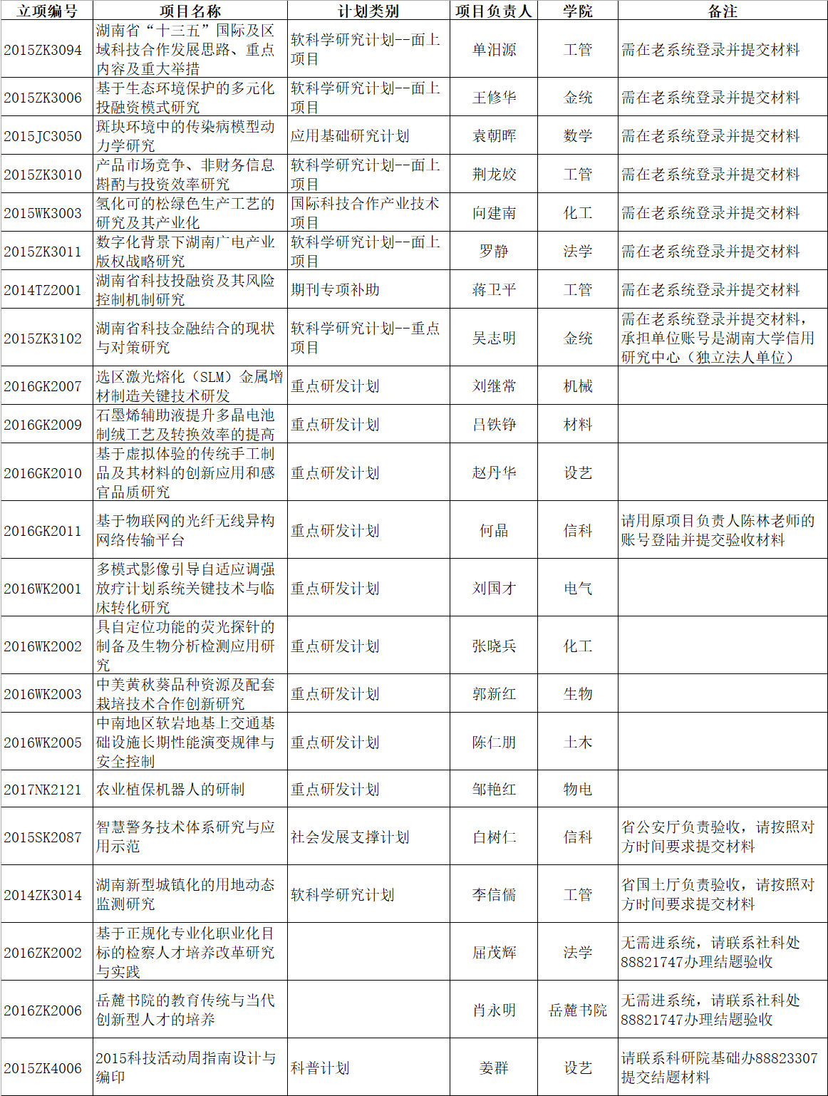 计划财务处科研专项科 0731-88822945