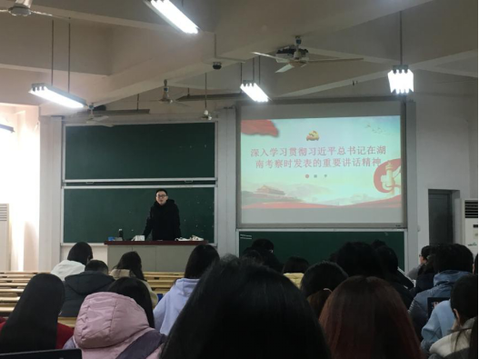 周斌以“学习贯彻总书记在湖南考察时发表的重要讲话精神”为题,重点阐述了习近平总书记在湖南考察的基本概况、听取工作汇报后发表的重要讲话以及考察调研线上真人百家乐 的重要讲话精神。同时,他通过开展知识问答小游戏、发放精美小礼物的方式,进一步增强了同学们的学习趣味性。