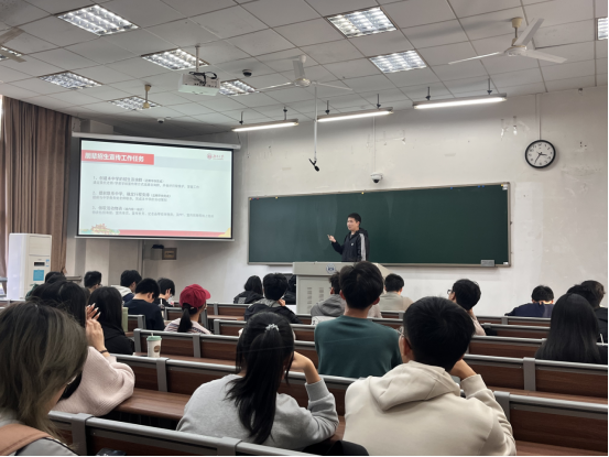 培训会上,邓子熠首先详细介绍了朋辈招生宣传工作的前期准备、活动开展、总结评优等各项内容,明确各区域成员分工及负责人工作任务。