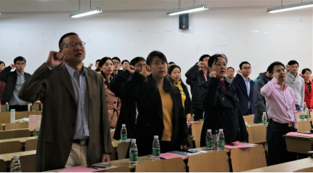 在选举环节之后,副院长吴志明同志带领全体党员重温入党誓词,党员代表大会在全体人员奏唱的《国际歌》中圆满结束。