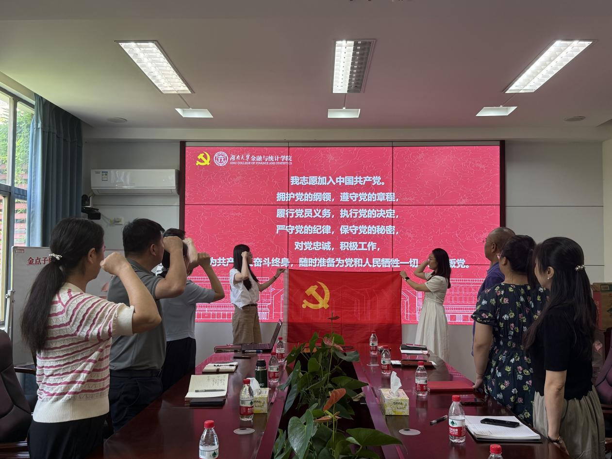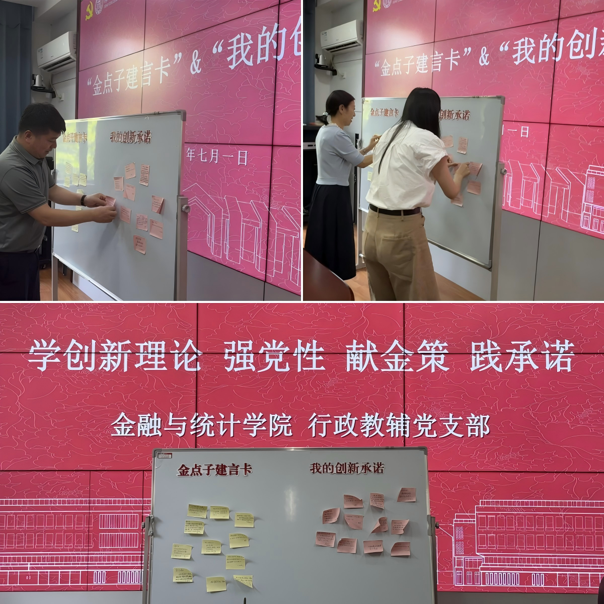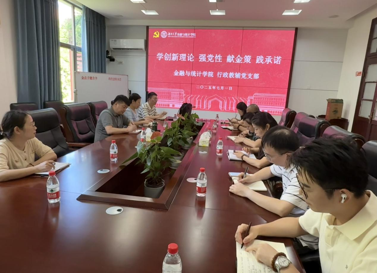 为庆祝中国共产党成立104周年,回顾党的光辉历程,传承党的优良作风,凝聚奋进力量。7月1日上午,金融与统计线上真人百家乐 行政教辅党支部在线上真人百家乐 226会议室举行了以“学创新理论 强党性 献金策 践承诺”为主题的党日活动,旨在进一步加强党员的理论学习,提升党性修养,激发创新活力。线上真人百家乐 党委书记黄红立、正处级组织员刘晚梅、党委副书记谭凤娥出席活动。