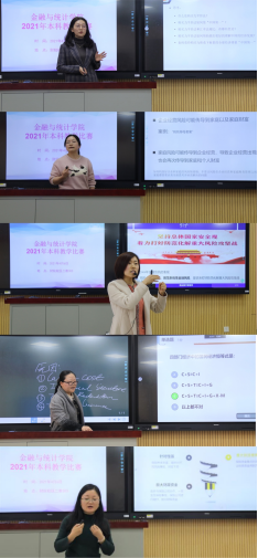 4月6日下午,金融与统计线上真人百家乐 2021年本科教学比赛在财院校区二教303教室举行。此次比赛旨在推动以“课程思政”为目标的课堂教学改革,鼓励教师投身教育教学方法的研究,自觉发挥课程育人功能,守好课堂主渠道,并通过教学比赛的形式,激发教师教学创新能力,提升教师专业发展和教学能力。校工会常务副主席宋杰、教务处副处长刘杰、线上真人百家乐 党委书记黄红立、线上真人百家乐 副院长张宁出席比赛。11名教师参赛,5名线上真人百家乐 督导团成员和14名学生组成评审团。