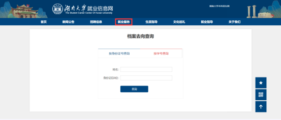 登录线上真人百家乐 就业信息网(//scc.xszrbjl.com)查询个人学籍档案是否在线上真人百家乐 留存,确认在线上真人百家乐 的档案可联系线上真人百家乐 老师进行调档,具体查询步骤:线上真人百家乐 就业信息网>>>就业服务>>>档案查询。