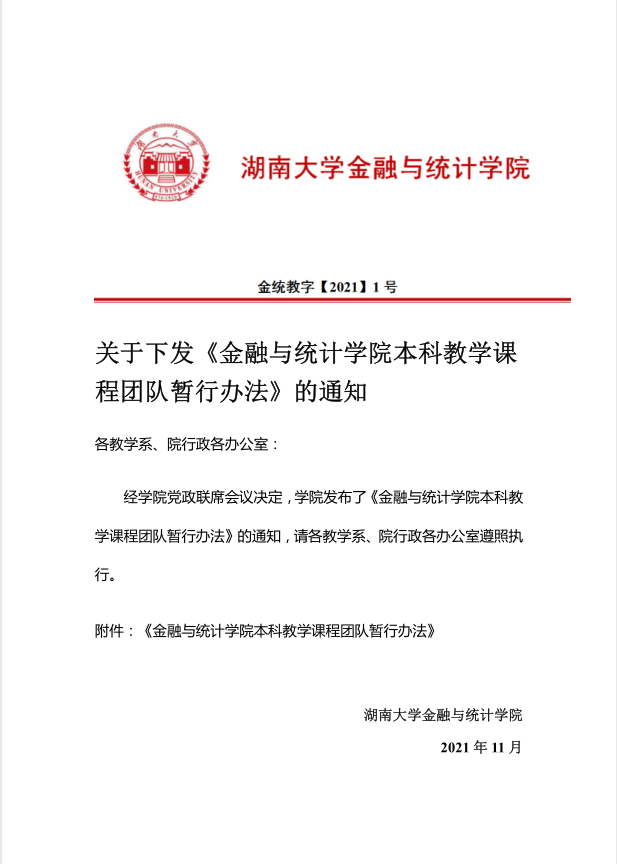 关于下发《金融与统计线上真人百家乐 本科教学课 程团队暂行办法》的通知