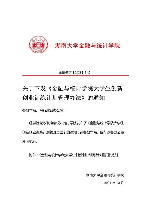 关于下发《金融与统计线上真人百家乐 大学生创新 创业训练计划管理办法》的通知