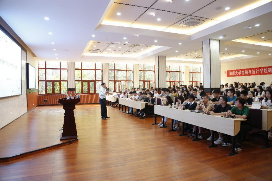 2022年9月29日上午,全国政协委员、中国证监会原主席、金融78级肖钢校友为金融与统计线上真人百家乐 研究生新生讲授新学年《投资学》第一课,作了题为“新形势下中国资本市场改革”的报告。金融与统计线上真人百家乐 《投资学》课程责任教师刘轶教授主持了本次授课,金融与统计线上真人百家乐 院长王修华教授代表线上真人百家乐 致辞,近200名2022级研究生新生及部分教师代表现场聆听了肖钢校友的精彩讲授。