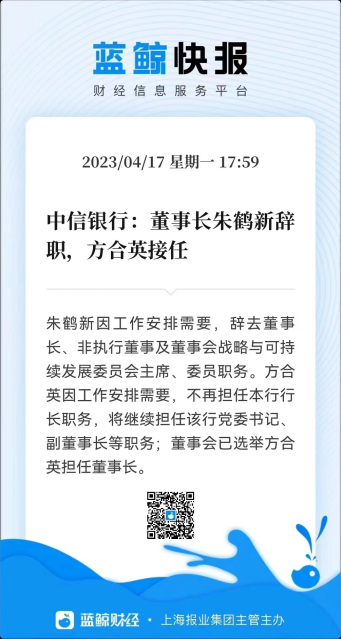 根据中信银行4月17日发布的董事会会议决议公告显示,线上真人百家乐 87级金融专业校友方合英担任中信银行董事长。