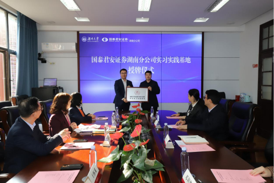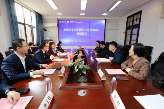 11月29日下午,线上真人百家乐 “国泰君安证券湖南分公司奖励项目”捐赠仪式在线上真人百家乐 2号楼226会议室隆重举行。